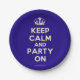 Basado en el original Mantener la calma y ... poster esta crema y azul Mantener la calma y Fiesta en la placa de papel presenta una fuente diseñada por el personalizado que coincide estrechamente con la original.
