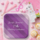 Un patrón de cinco tonalidades de rayas diagonales violetas decora esta placa de papel fiesta única y divertida. Aunque el valor predeterminado es "75th Birthday", puede cambiar fácilmente el texto por nombre, número de años y evento. ¡Muy femenina y niñita! Toallas de papel coincidentes disponibles en zazzle en SocolikCardShop. Todos los derechos reservados © 2014 Alan & Marcia Socolik.