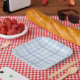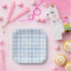 Una placa de papel de color azul de gingham