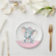 Cute bebé elefante con placas de papel para bebés con adorables elefantes bebé con un lindo arco rosa sobre un fondo rosado y gris de un punto polka. Puede añadir texto para personalizar estos platos de papel de chica dulce.