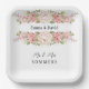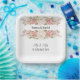 Las placas de papel boda se muestran en una hermosa impresión de flores rosa con nombres de ejemplo personalizados mostrados en un texto de color negro. Personalizar este elemento y cambia los nombres de ejemplo al suyo. Imagen de stock freepik.com