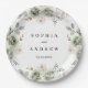 Plato De Papel Placas de papel Boda de flores verdes y blancas sa