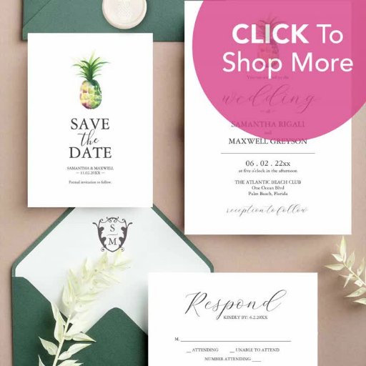 Tropical Destination Wedding Invitation Suite Diseñado por Victoria Grigaliunas