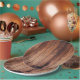 ¡El aspecto de madera oscura y rica en tus placas de papel será un éxito en tu próxima reunión!