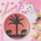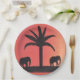 Estas placas de papel están diseñadas con mi representación de dos elefantes silueteados por un cielo naranja al atardecer.