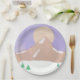 Estas placas de papel se diseñan con una pintura de papel del arte de una montaña caprichosa delante de una Luna Llena en un cielo de la lavanda.