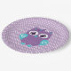 Platos de papel morado y verde azulado de búho chica para cumpleaños, ducha de bebé, etc.