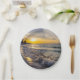 Placas de papel fiesta con olas salpicando en la costa durante una salida dorada del sol en Pensacola Beach, Florida. El sol brilla sobre la arena mojada y las olas. ¿Buscando más impresiones o productos? Siéntete libre de visitar mi tienda: http://www.zazzle.com/timelessmomentsphtgy Esta foto fue tomada por Jennifer White con Timeless Moments Photography. Todas las imágenes tienen derechos de autor © Timeless Moments Photography.