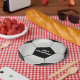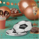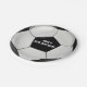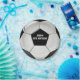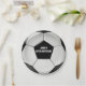 El fútbol se divierte - las placas de papel temáticas, con los gráficos de un balón de fútbol blanco y negro como el fondo. Personalice el texto blanco para sus deportes especiales - el acontecimiento temático, las servilletas de papel a juego y las invitaciones están disponibles.