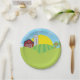 Una hermosa granja rural contra un sol brillante. Este diseño se ve realmente efectivo en estas placas de papel