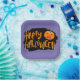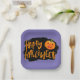 Este plato de papel se muestra en un diseño festivo de calabaza temible de Halloween Happy. Personalizar este artículo o compra tal cual. Imagen de stock