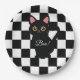 Un plato de papel con un gato negro. El texto se puede editar o eliminar. Ideal para una fiesta de Halloween. Cubos y servilletas coincidentes disponibles.