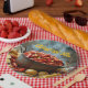 Platos de fiesta de papel con imagen de la cocina de langosta con patatas y maíz para hervir a cangrejos de verano.