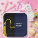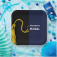 Creativa fiesta de graduación felicita a los alumnos por el grado con una tapa clásica de graduación en negro y oro sobre un fondo azul marino. Editar texto para añadir el nombre del graduado de clase superior.