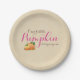 Placas de papel de la primera fiesta de cumpleaños para la calabaza otoño. Fondo Burlap.