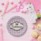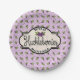 ¡Montana silvestre Huckleberries! Los platos perfectos para tu evento con temática de arándanos. Los platos son lavanda con pequeños conglomerados de arándanos morados con hojas verdes. En el centro hay una etiqueta en crema con polka-punts de lavanda y las palabras "Montana salvaje de las bayas".