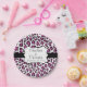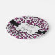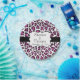 Placas de papel de leopardo con un diseño de impresión animal morado, negro y blanco, un borde blanco con banner negro que se puede personalizar con los nombres de la novia y del novio y fecha de boda.