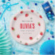 Haz que tu mesa fiesta se pop con estos adorables platos de papel con temática de fresa, perfecto para el primer cumpleaños de un chica. El diseño presenta fresas acuáticas brillantes en un suave fondo de color negro, con un texto rojo y negro juguetón para celebrar el gran hito de tu pequeño. Estos platos redondos de 9 pulgadas, divertidos y funcionales, le dan un toque dulce y personalizado a su postre o a su snack-bar. Personalizar fácilmente el nombre y la fecha utilizando las sencillas herramientas de edición de Zazzle. Diseñados para la durabilidad e impresos con un color vívido, estos platos se combinan maravillosamente con la suite de cumpleaños completa: servilletas, carteles, invitaciones y más. ¡Acoger con facilidad y estilo tu celebración de berry dulce!