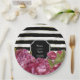 Los encantadores platos personalizados de papel de Boda floral presentan Peonies color de agua rosa sobre un fondo moderno de rayas acentuadas en blanco y negro. Añade nombres de novias y novios y fecha de boda. Artículos coincidentes disponibles en mi tienda.