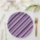 Añada un estilo elegante a su fiesta con placas de papel con un patrón festivo de rayas moradas y blancas de líneas diagonales en diferentes anchos.
