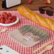Los colores son coral, rosa, verde y marrón, acentuados con tipografía de escritura.
