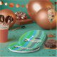 Placas de papel del fiesta retro rayado de la vespa. Diseñado por Ana-Marie Bush