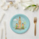 Platos de papel con imágenes ilustrativas de monumentos de Londres en Inglaterra como Big Ben, London Bridge, más.