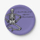 Placa de papel fiesta mostrada en morado con un esqueleto impreso en Halloween. Se muestra un tamaño de 7". Personalizar este plato o compra como está.