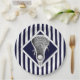 Fiesta de lacrosse creativo o platos de eventos deportivos con diseño de fiesta de equipo azul marino para eventos laxos, noche senior o cumpleaños de jugador de lacrosse.