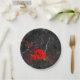 Plato De Papel Placas de papel, flor rosa roja de mármol negro