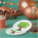 Un árbol verde muy arbolado parado solo. Este diseño parece realmente efectivo en estas placas de papel