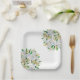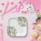 El plato de papel fiesta se muestra en blanco con una impresión de arte de lineas blancas preciosas. Disponen de servilletas de papel coincidentes. Personalizar este artículo o compra tal cual. Imagen de stock