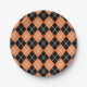 Un naranja tradicional y un estilo de argyle negro decoran estos platos festivos de papel de Halloween. Estas divertidas placas de papel son geniales para Halloween, una fiesta de Halloween, niños, niños, etc... El diseño es de arte original.