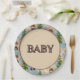 Placas de papel con temática Moose y Mobile para la ducha de bebé para coordinarse con su ducha de bebé. Estas placas de papel tienen un fondo de alces y abetos bebé sobre una estampada de manchas con un gran círculo de color tostado y la palabra "BABY" en el centro. El texto es editable para que pueda personalizar a sus necesidades. Una adición perfecta a las necesidades de ducha para bebés.