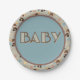 Placas de papel de bebé redondas Moose y Mobile 7". Más pequeño para servir pasteles o pasteles. Tema personalizado que coordina con los elementos encontrados en la colección Welcome Baby.