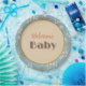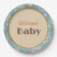 Invitaciones a ducha Moose y Mobile con Bienvenida Bebé en el centro. Ronda de 9" para servir un almuerzo o comida fiesta. En la colección Welcome Baby encontrará una decoración y suministros coordinados de fiesta para este bonito tema del bebé.