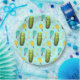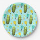 Diseño de platos fiestas de pickleball divertidos con un pepinillo fiesta con un remo.