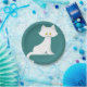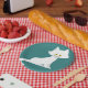 Un gatito blanco adorable sobre un fondo verde. Este diseño parece realmente efectivo en estas placas de papel
