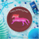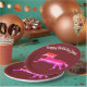 Silhouette de caballo rosa salvaje dibujando en placas de papel. Color de fondo personalizado. Perfecto para la fiesta de cumpleaños de un chico. Es fácil añadir tu texto y tu nombre.