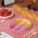 Plato De Papel Placas de papel rosa y amarillo de hexágono geomét