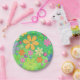Plato De Papel Placas de papel verde de flores de los años 60