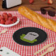 Este impresionante plato de fiesta de papel presenta una lápida gris con RIP en gotear texto negro sobre ella, parado en un parche de hierba verde. A diferencia de este diseño mórbido, el fondo es negro.