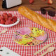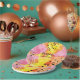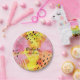 Platos fiestas con estilo, con platos abstractos de color rosa y naranja personalizados, adecuados para todo tipo de ocasiones, como cumpleaños, duchas de bebé, duchas de novias o simplemente un picnic en el parque. © Mini Impresiones Moi