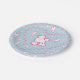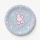 Éstos el fiesta de papel platean los perros de caniche lindos de juguete de la característica que se han preparado y tienen impresiones en forma de corazón de la pata. Rosa y blanco en un fondo azul claro. Grande para los fiestas de los niños.