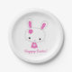Placas personalizadas de papel de Pascua con un lindo conejito rosa y texto de personalizable