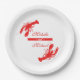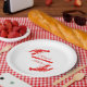 Personalice estas placas de papel que ofrecen dos siluetas de los cangrejos (langosta) en un diseño rojo y blanco brillante. ¡Perfeccione para su compromiso de la ebullición de los cangrejos, acontecimiento del boda o del aniversario!