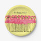 La multitud hermosa de los pájaros tropicales del flamenco rosado va de fiesta las placas de papel en un rosado de moda y diseño intrépido amarillo con el texto que usted puede personalizar para adaptarse a su tema del fiesta que diga que es tiempo del fiesta. Diseñado para una fiesta en la piscina, un fiesta de la playa, o un fiesta de casa temático tropical que añade un tacto del estilo a su reunión.