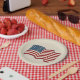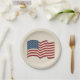 Una rústica bandera americana ondulada decora este plato de papel festivo. Este plato es genial para el Día de la Independencia, el 4 de julio, 4 de julio, una barbacoa, picnic, cocina, Día del Trabajo, Día de la Conmemoración, verano, un fiesta, etc...