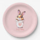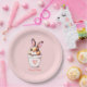 Plato De Papel Planta de conejitos de cumpleaños lindo en rosa cl