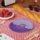 Plato De Papel Plantilla de código QR moderno editable | Púrpura